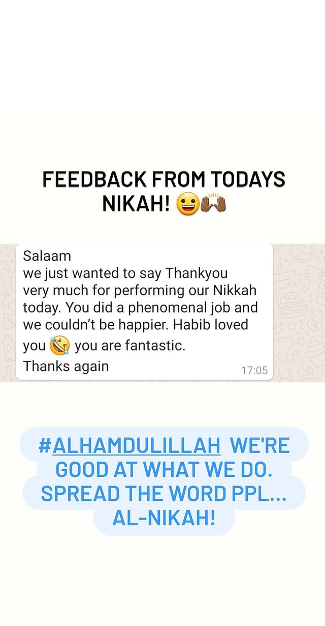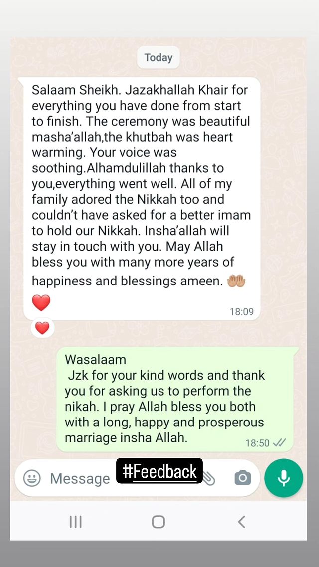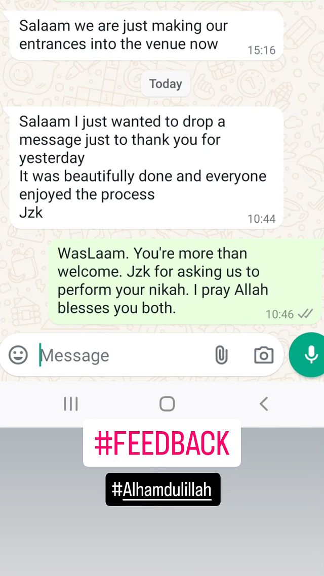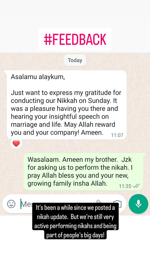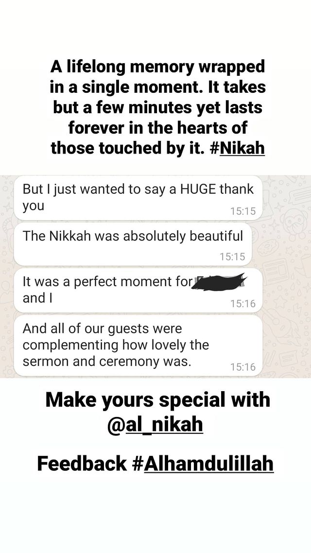 Feedback from our couples is a testament of our commitment the service we provide, alhamdulillah. Take a moment to view our testimonials below: