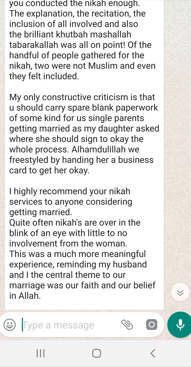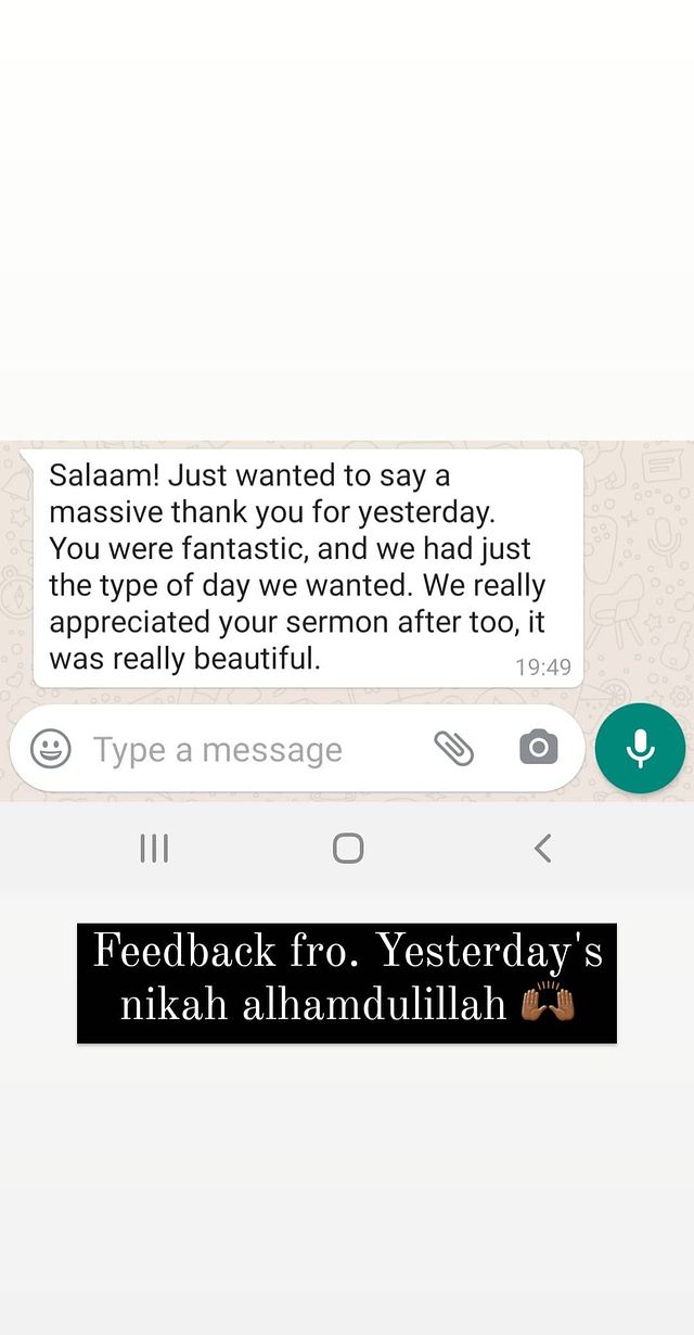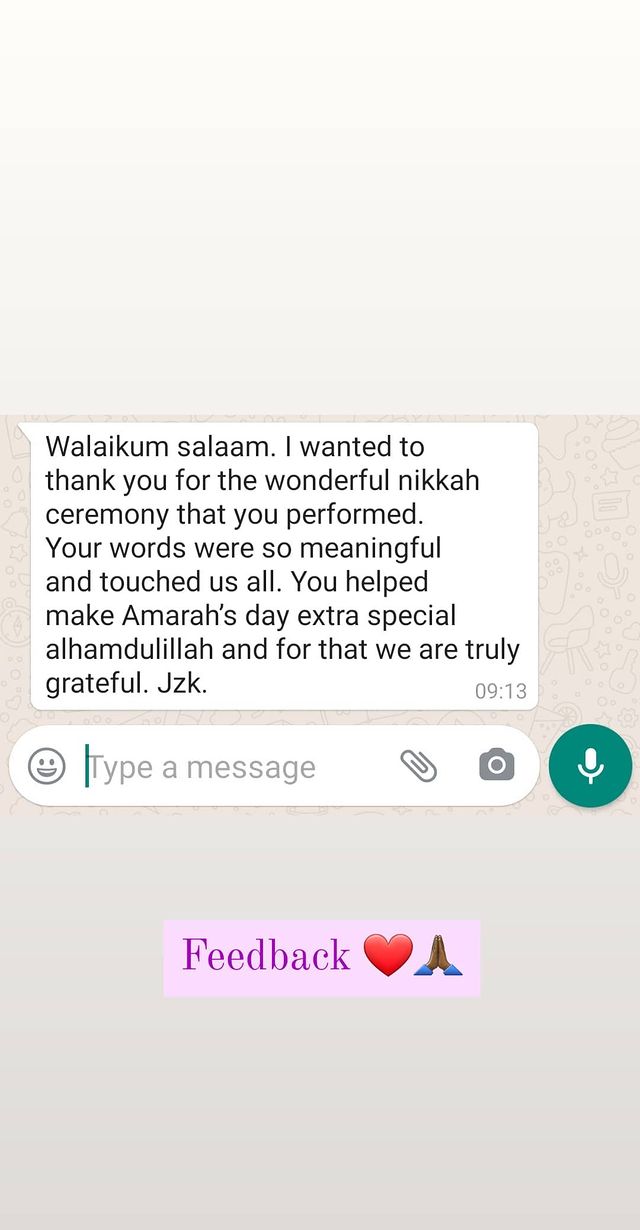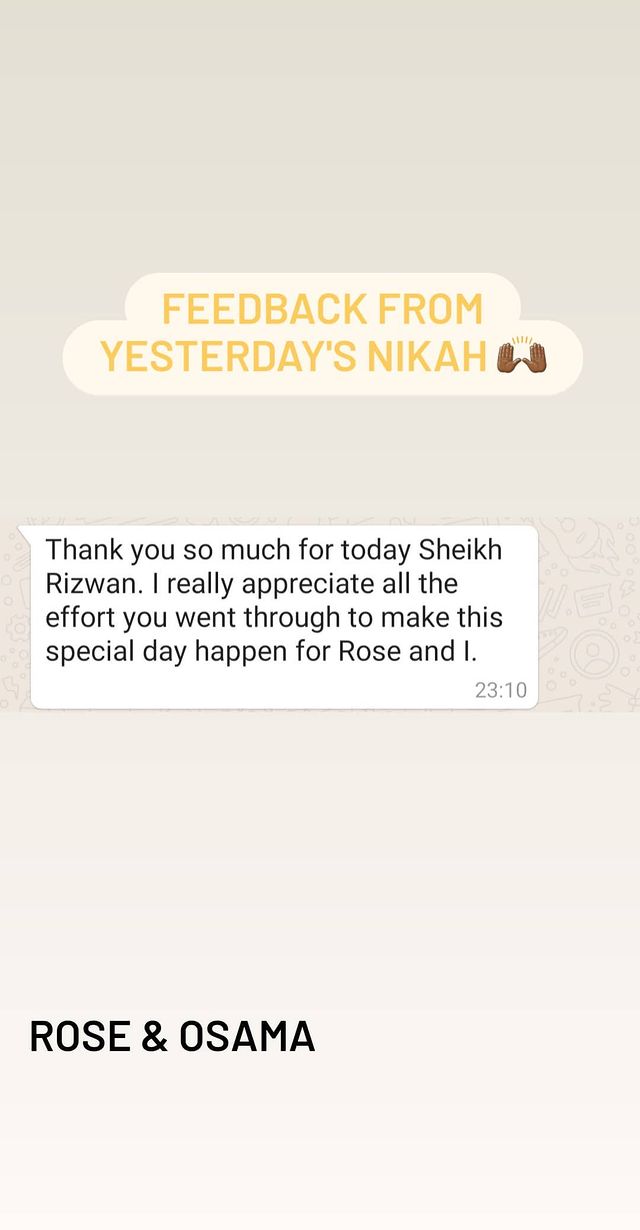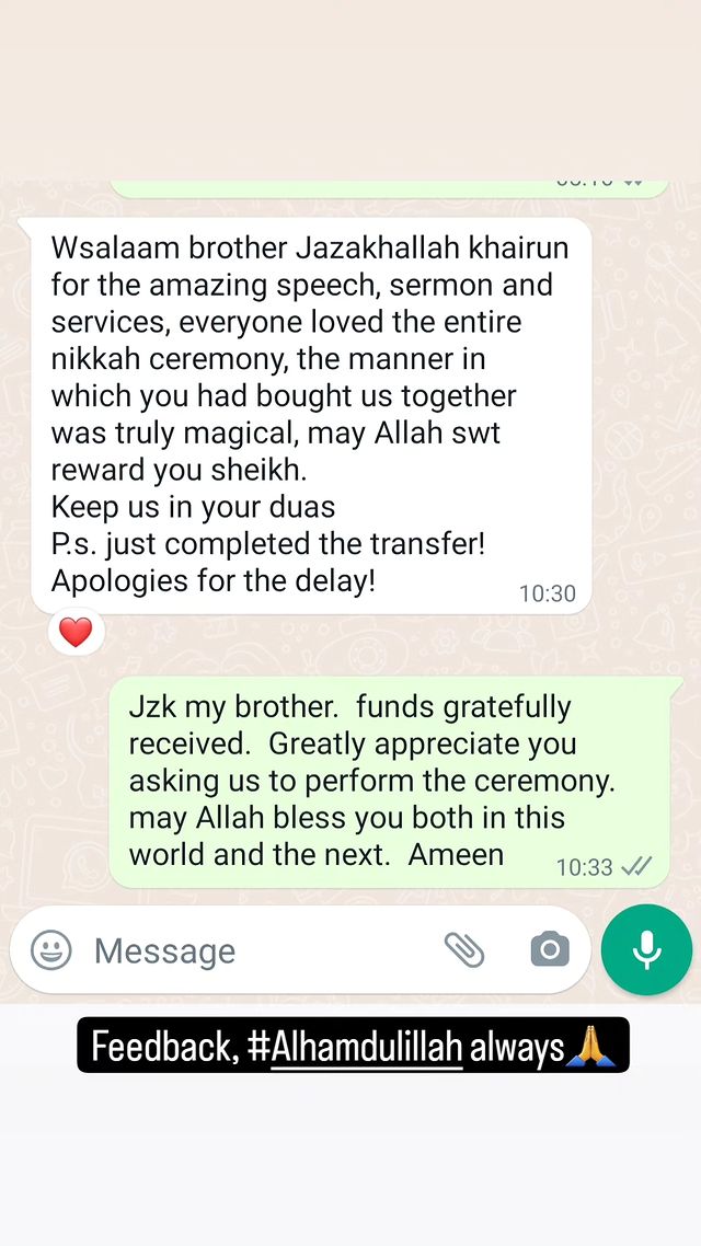 Feedback from our couples is a testament of our commitment the service we provide, alhamdulillah. Take a moment to view our testimonials below:
