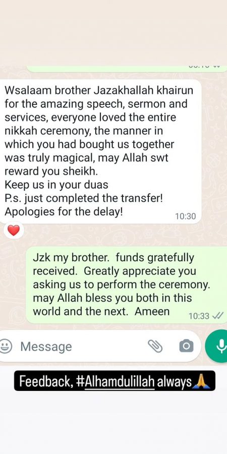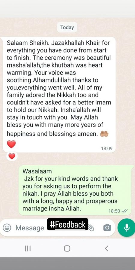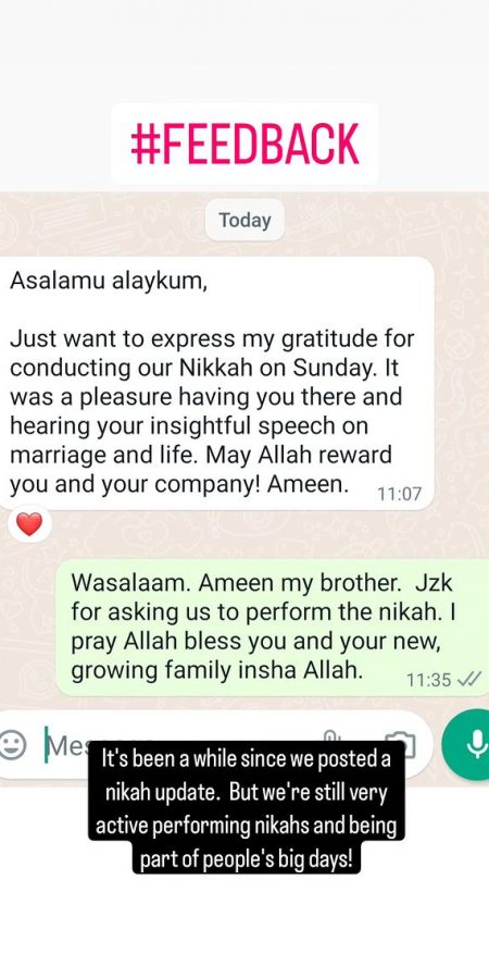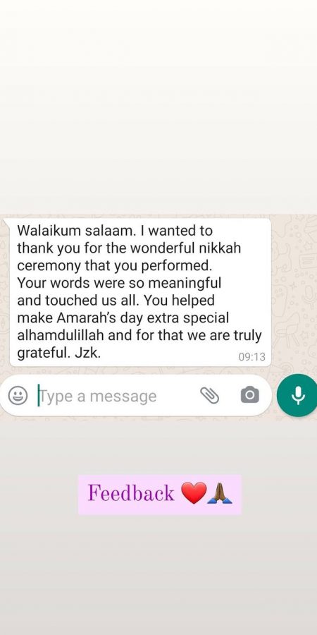 Feedback from our couples is a testament to our commitment to the service we provide, alhamdulillah. Take a moment to view our testimonials below